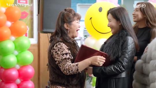 그런데 이처럼 이혼을 주 소재로 담고 있는 <한 번 다녀왔습니다>에 조금은 이질적인 인물이 들어와 있다. 바로 강초연(이정은)이다. 어려서 스님에게 자라 단란주점을 해오다 송영달이 일하는 시장통에 언니들 김밥집을 내고 장사를 시작하는 인물. 개업 날부터 시장 분위기와는 사뭇 어울리지 않는 김밥집 가게의 풍경이 펼쳐진다.