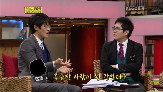 하기야 요 몇 년 새 출판계를 휩쓸고 잇는 화두 역시 ‘긍정의 마법’이 아닌가. 그러나 글자로 읽는 긍정이 아닌 경험담으로 전해 듣는 긍정이 훨씬 더 설득력이 있었으니 ‘공부의 신’ 강성태가 <이야기쇼 두드림>에서 들려준 어머님의 일화가 바로 그랬다. 기대 이하의 성적표를 들고 갔을 때 그의 어머니는 실망을 하기보다는 훗날 ‘그렇게 공부 잘한다는 강성태도 이리 형편없는 성적을 받은 적이 있구나’하며 위로받는, 용기를 얻는 사람들이 생길 것이라며 오히려 격려해주셨다고 한다.