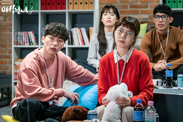 <야식남녀>는 시청률이 겨우 1%대(닐슨 코리아)를 간신히 유지할 정도로 그다지 화력이 좋은 드라마는 아니다. 확실한 캐스팅 파워를 가진 프로그램도 아닌데다, 이야기가 독창적이지도 않기 때문이다. 음식이라는 트렌디한 소재를 가져왔고, 비정규직과 성 소수라라는 약자의 현실이 주는 시대적 정서에 음식을 통한 위로와 멜로를 더했다. 특별한 구석을 찾기가 어려운 드라마다. 그나마 비정규직과 성 소수자에 대한 약자의 현실을 적나라하게 끄집어내는 젊은 꼰대가 도드라지게 보이는 건 그래서다.