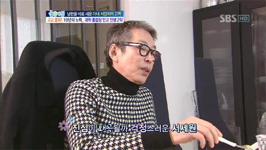 [엔터미디어=정석희의 그 장면 그 대사] 어제 아침 SBS <좋은 아침>에서는 쉰을 훌쩍 넘긴 나이에 제 2의 인생을 시작한 서세원 씨 부부의 근황이 소개됐다. 부부의 근황이라고는 하나 이야기의 중심은 새 삶을 살게 된 서세원 씨가 아닌 이런저런 병마에 시달리면서도 남편을 목사로 만들기 위해 쉼 없이 달려온 부인 서정희 씨에게 있었는데, 그러나 숱한 난관들을 신앙의 힘으로 극복해냈다는 점이야 칭찬받아 마땅하지만 도무지 공감을 하기 어려웠던 건 끊임없이 계속되는 ‘알뜰’, ‘절약’ 타령이었다.