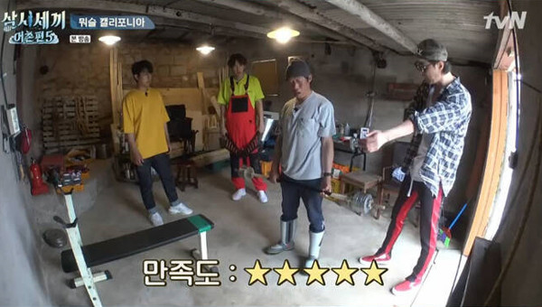 이광수의 등장은 이들이 이렇게 전혀 의식하지 못한 채 각자 주어진 일들을 해나가는 걸 새삼스럽게 바라보는 시선을 만들어낸다. 차승원이 마늘 다진 거 있냐고 물으면 그게 어디 있는지 척척 찾아내 건네주는 그 모습을 이광수는 낯설게 바라본다. 점심을 못 먹은 이광수를 위해 즉석에서 김치볶음밥을 해주고 전날 잡은 참돔회를 썰어주는 차승원과 그걸 보는 유해진, 손호준의 모습은 새삼스럽게 자신들이 적응해온 섬 생활에 대한 은근한 우쭐함이 피어난다. 괜스레 섬 산책을 같이 하고 헬스장(?)을 소개하는 유해진의 어깨는 한껏 올라가 있다.