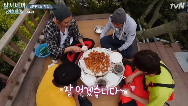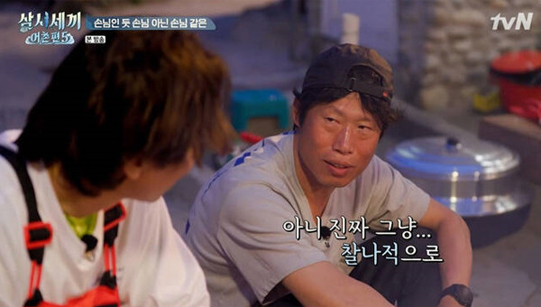 차승원이 사전에 전화를 해 가져온 닭고기로 섬에서 바삭한 마늘치킨에 맥주를 마시는 호사를 부리면서, 이 손님 같지 않은 손님 이광수는 뭐라도 해야 할 것 같은 마음에 일을 거들다 자꾸만 손호준과 일이 겹치고, 은근 경쟁하는 모습으로 웃음을 준다. 물론 베테랑 막내가 된 손호준을 이광수가 단박에 따라잡긴 어렵지만, 특유의 적응력으로 금세 적응해버린 이광수의 모습은 그 자체로 웃음을 준다. 손님이 아닌 머슴을 하나 들인 듯한 그런 모습 때문이다.