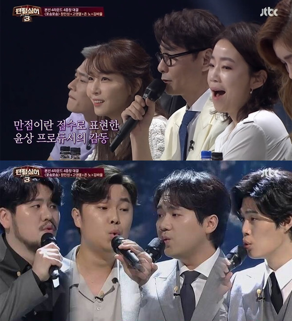 노래가 다 끝나고도 그 먹먹한 감정에서 빠져나오지 못한 채 잠시 침묵이 흘렀다. 가수들은 물론이고 프로듀서들 그리고 다른 팀 가수들까지 할 말을 잃었다. 김문정 프로듀서는 울컥했고, 김이나 프로듀서는 “미쳤어”라고 소름 돋는 무대에 경탄을 금치 못했다. 윤상 프로듀서는 “이곡을 알게 해주셔서 네 분께 정말 감사드린다”며 “팬텀 기억에 만점을 드린 적은 없는 것 같다”며 자신이 100점을 줬다는 사실을 밝혔다.