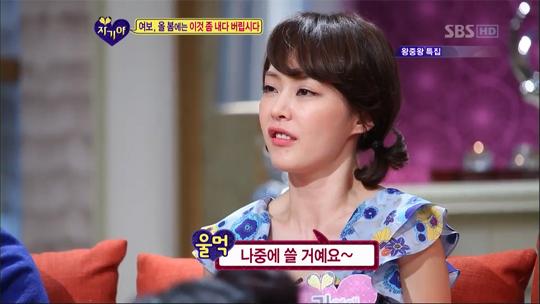 자우림 멤버 구태훈 부부의 경우 남편은 딱 한번 쓰고 넣어둔 로봇 청소기가 불만이었고 아내는 단 한 차례도 쓰인 적이 없는 공구 세트가 불만이었으니까. 구태훈이 1년 동안 한 번도 사용하지 않았다면 필요한 사람에게 양도하는 것이 마땅하다며 아나바다(‘아껴 쓰고 나눠 쓰고 바꿔 쓰고 다시 쓰고’의 준말) 장터에 내놓겠다고 하자 아내 김영애는 명색이 혼수거늘 남을 준다는 게 말이 되느냐며 강하게 항변했는데 어찌나 억울했던지 눈물이 살짝 맺히기까지 했다.
