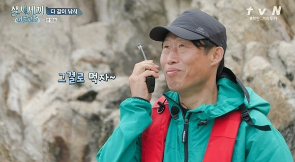 유해진의 부담감을 제대로 알게 된 차승원은 유해진에게 무전으로 “대안을 생각해놨다”며 김치부침개를 해먹자고 한다. 그 말에 유해진은 특유의 웃음을 지으며 “그것도 맛있다”고 말하고, 차승원은 부담을 덜어주는 말을 툭 던진다. “그러니까 걱정하지 말고 기다리고 있자구.” 그런 이야기들을 옆에서 듣고 있던 손호준이 마치 유해진의 너스레가 전염된 듯 농담을 던진다. “내일 날씨도 안 좋고 그러면 저번에 갔던 레스토랑 한 번 더 가야 되는 거 아니에요?” 그 농담에 차승원은 빵 터진다. 그건 지난 번 먹을 게 없어 감자, 고구마를 삶고 구워내 마치 레스토랑에서 스테이크를 먹는 것처럼 유해진이 유쾌한 상황극을 했던 걸 말한다.