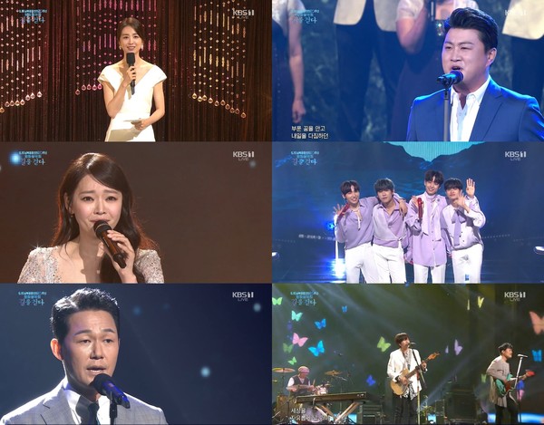 가수 김진호는 보고 싶어도 볼 수 없는 가족에 대한 그리움을 '가족사진'에 담아 전했다. 크로스오버의 대표 주자 포레스텔라는 평화를 향한 염원을 조용필의 '바람의 노래'에 담았고, 이어 마이클 잭슨의 'heal the world (힐 더 월드')를 어린이 합창단과 함께 환상의 하모니를 선사했다.