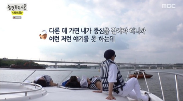 “누나 나는 내가 다른 사람 보는 것 같다. 재석이 형이랑 누나가 있으니까 내가 앙탈을 부릴 수가 있잖아. 다른데 가면 내가 중심을 잡아야 되니까 이런저런 이야기 못하는데...” 요트 위에 누워 비룡이 툭 던지는 이 한 마디에 그가 얼마나 <놀면 뭐하니?>의 이 싹쓰리 프로젝트에 기분 좋게 임하고 있는가가 느껴진다.