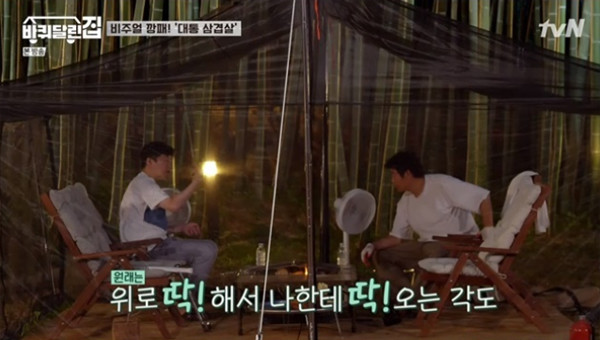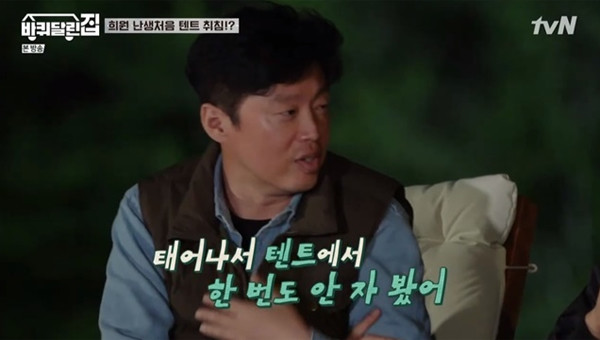 “나 솔직히 태어나서 텐트에서 한 번도 안 자 봤어.” 김희원이 그런 이야기를 하자 성동일이 다정하게 묻는다. 텐트 치고 밖에서 자자고. 오히려 공효진이 “되게 아늑하고 좋다”고 말하자 솔깃한 김희원이 그러자고 하고, 하룻밤을 텐트에서 지내고 아침에 일어나서는 “여기가 너무 좋다”고 말한다.