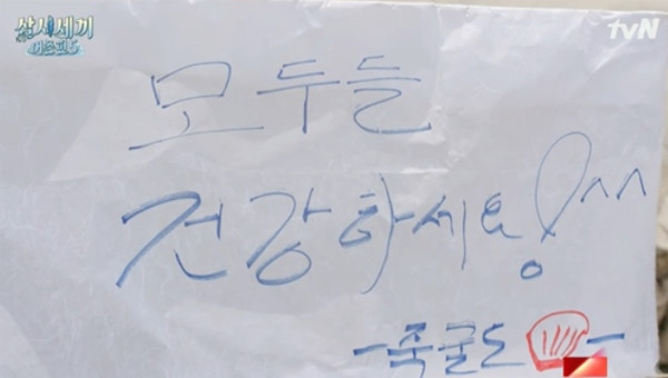 마지막으로 죽굴도를 떠나며 차승원과 손호준 그리고 유해진이 남긴 메시지도 훈훈했다. 손호준은 코로나19 시국에 잠시라도 웃으셨다면 그걸로 만족한다고 했고, 차승원은 빨리 이 시국이 끝나 일상으로 돌아가기를 기원했다. 유해진은 가랜드에 메시지를 이렇게 적어 놓았다. “모두들 건강하세요!”
