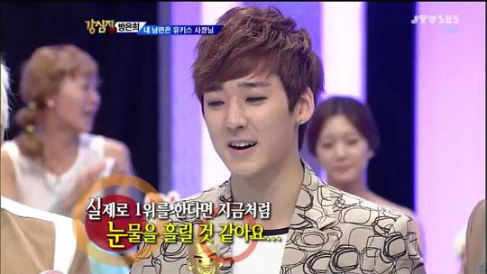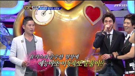 [엔터미디어=정석희의 그 장면 그 대사] 이번 주 SBS <강심장>에서는 예상치 못한 감동과 만날 수 있었다. “근데 아직까지 1등을 한 번도 못했어요. 너무너무 속상하고, 너무너무 화가 나고, 너무너무 부럽고 그래요. 그런데 제가 지금 울먹거리고 그러는 거는 1위를 못했다는 것 때문이 아니라 앨범 하나하나 나오는 동안 이 아이돌들, 한류를 이끄는 가수들의 피땀이 생각나서 그러는 거예요.” 발단은 기획사 대표의 부인인 연기자 방은희의 이와 같은 가슴 짠한 하소연에서 비롯됐는데 데뷔 5년 차라지만 지금껏 단 한 번도, 어느 가요순위 프로그램에서도 1위의 영광을 차지해보지 못해 아쉬움이 많다는 아이돌 그룹 유키스, 그리고 자식 같은 그들이 우승 트로피를 거머쥐는 모습을 보는 것이 소원이라는 대모 방은희의 포한을 풀어주고자 감동의 자리가 가상으로 마련된 것.