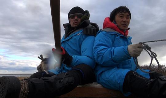 보통의 공간이라면 물을 건너는 행위가 그렇게 재미있게 보여질 수는 없었을 것이다. 하지만 뼛속까지 파고드는 한기를 느끼게 만드는 툰드라의 물로 몸을 던지는 장면은 한때 <1박2일>이 한겨울에도 계곡이나 바다만 보면 입수하던 그 강한 자극을 훌쩍 뛰어넘는다. 그 앞에서 들어갈까 말까를 고민하다가 박태환 선수를 능가할(?) 속도로 물을 건너는 리키의 모습은 강렬하면서도 웃음을 자아내게 만든다.