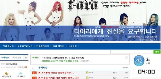 화영의 왕따설이 제기되고 소속사의 퇴출과 관련한 보도자료가 속속 발표되면서 티아라 팬들은 티아라를 비판하는 세력으로 돌변했다. ‘티아라의 진실을 요구합니다’ 카페가 개설돼 일시에 30여만명의 회원들이 가입해 티아라와 소속사에 대한 각종 의혹과 비난과 분노를 쏟아내고 있다.