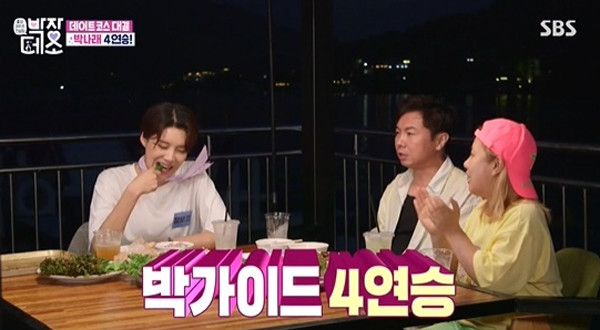 <박장데소>는 이런 흐름을 거스른다. 연애감성이나 리얼한 관계 보다는 설계와 대결이란 측면이 두드러지는 만큼, 박나래가 몸담은 바 있는 여행예능 tvN <짠내투어>의 데이트 버전 같다. 요즘 데이트 코스로 뜨고 있는 힙한 핫플레이스와 엑티비티를 소개하면서, 연애를 이롭게 하는데 도움이 될 만한 짧은 과학적 상식이나 사례를 곁들인다. 그리고 두 가이드가 가져온 코스를 비교해 승패를 정한다.