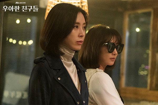 이후 <우아한 친구들>은 안궁철(유준상)과 남정해(송윤아) 부부 사이에 들어온 주강산(이태환)과 그의 죽음을 바탕으로 스릴러로 전환하는 듯 보였다. 하지만 안궁철의 친구들 사연이 안 궁금한데도, 계속 그들의 사연을 보여주느라 드라마는 도돌이표를 찍었다. 그 중에도 또 친구들은 천만식을 잊지 못해 다 같이 등산을 한다. 그 장면을 또 드론까지 이용한 촬영으로 멋있게 보여준다. 그런데 왜 드라마가 절반이 지나가는 길목에서 그들이 굳이 산에 가는 것까지 길게 보여줘야 하나? 이거 100부작 넘는 일일드라마 아니라 스릴러에 가까운 미니시리즈 아니었나, 이상하잖아.