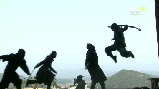그러니까 지금까지 이야기한 <아랑사또전>과 <돌아온 일지매>, <태왕사신기> 액션 스타일의 방점은 롱테이크, 그리고 다소 거리를 둔 카메라에 있다. 사실 90년대 중후반 무렵부터는 드라마에서의 액션 연출이 비약적으로 발전하여 <다모> 이후로는 영화와 비교해도 결코 떨어지지 않는 화면들을 자주 만날 수 있게 되었다. 여기에는 고급 무술감독 및 스턴트 인력들의 유입도 큰 역할을 했지만 촬영기법의 혁신이 결정적인 기여를 했다고 본다. 말하자면 고속 재생에서부터 슈퍼 슬로우까지 자유자재로 담아낼 수 있는 카메라를 이용해 스타일리시한 액션 콘티를 드라마 현장에서도 어렵지 않게 구현할 수 있게 된 것이다.