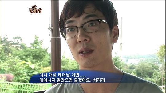 또한 수요를 위해 우리에 갇혀 죽어라 생산만 하다 생을 마치는 어미 개도 부지기수란다. 차마 방송된 내용을 이 자리에 세세히 옮기지는 못하겠다. 너무 가슴 아프고 미안해서. 사람의 필요에 의해 태어나 사람의 손에 의해 생을 마감하는 장면도 끔찍했지만 더 가슴이 서늘했던 건 한 마디로 개 공장에서 솎아냄을 당해 버려진 것으로 추정되는 말티즈 새끼들이었다. 눈도 제대로 못 뜨는 어린 강아지들이 과일도 아니고 채소도 아니거늘 어찌 이리도 잔인할 수 있을까.