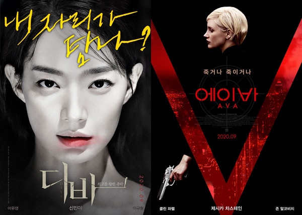 마찬가지로 9월 개봉 예정인 '에이바'는 타깃 제거 100% 킬러 ‘에이바’가 작전 도중 금기를 어기게 되고, 조직의 제거 대상이 되면서 ‘죽거나, 죽이거나’ 살기 위한 본능을 깨우는 액션 영화다.