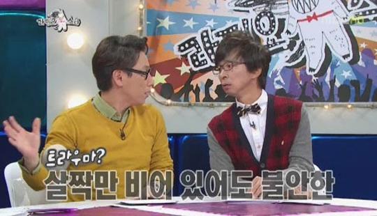 누군가 자리를 비울 때 그를 깎아내리고 때로는 독설을 하는 건 <라디오스타>가 애정을 표현하는 방식이다. 그리고 이것은 김구라의 방식이기도 했다. 그는 뜬금없이 양배추(조세호)의 이름을 들먹이며 그를 웃음의 재료로 쓰기도 하고 염경환을 호명해서 깎아내리며 웃음을 주기도 했다. 아무도 거론하지 않는 이들의 이름을 프로그램에서 꺼내놓는 것은 그 내용이 어떻든 그 자체로 그들에게는 큰 도움이 된다. 악플보다 힘든 게 무플이 아닌가.