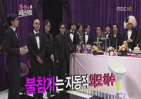 실제로 초대장을 받고 <못친소> 특집에 참가한 이들은 대부분 그 특별한 개성과 매력으로 대중들에게 사랑받고 있는 장본인들이다. <무도> 멤버들은 물론이고, 김제동, 김영철, 고창석, 이적, 윤종신과 하림, 조정치의 신치림, 김범수, 김C, 데프콘, 권오중이 그들이다. 그들은 저마다 자신들이 이 ‘하위 2%’의 축제에 초대된 것을 의아하게 여기면서 그걸 부정하고, 자신이 거기 초대된 누군가보다는 낫다는 식으로 큰 웃음을 주었다.