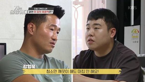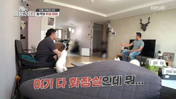 [엔터미디어=정덕현] 마치 SBS <백종원의 골목식당>에서 백종원이 가게의 위생상태를 점검하는 장면처럼 보였다. KBS <개는 훌륭하다>에서 강형욱은 때 아닌 고민견 보호자의 집 구석구석을 들여다보며 불결한 위생상태를 꼬집었다. 여기저기 오줌 얼룩들이 치워지지 않은 채 그대로 굳어 있었고, 싱크대에는 먹다 남겨둔 음식이 썩은 내를 풍기고 있었으며 휴지통은 가득 채워져 넘쳐나고 있었다. 강형욱은 일갈했다. “얘네 화장실 실수 안하는 것 같은데? 화장실이잖아 화장실.”