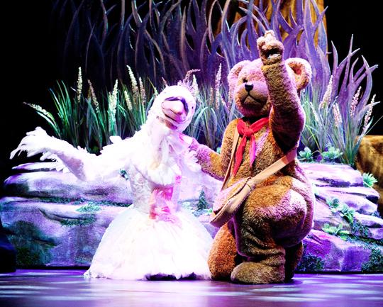 <테디베어씨어터의 백조의 호수>는 전문 무용수들이 테디베어를 비롯해 개구리 크록, 마법사 멧돼지 등 친근한 동물 캐릭터로 변신해 선보이는 국내 최초 인형발레극이다. 백조, 여우, 사슴 등 동물 개성을 살린 전문 발레댄서들의 판타스틱한 안무가 압권. 특히 뒤뚱뒤뚱 앙증맞은 스탭의 테디베어를 비롯해 왕자를 두고 화려한 날개짓으로 결투를 벌이는 오데트(백조)와 오딜(천둥오리) 등 1인무에서 2인무, 3인무로 다양하게 변화되는 점이 포인트.