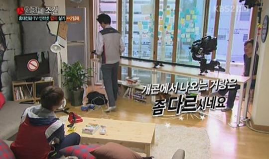 <인간의 조건>은 <개콘>의 이면 같은 느낌을 준다. <개콘>이 무대 위에서 분장을 하고 연기를 하는 개그맨들을 보여준다면 <인간의 조건>은 그 분장을 지우고 편안하게 집으로 돌아온 맨 얼굴의 개그맨들을 보여준다. 두 개의 예능 프로그램이지만 그래서 따로 떨어진 것이 아닌 <개콘>의 짝패 같은 느낌. 그것이 바로 <인간의 조건>이다.