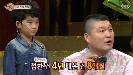 반면 이 시간대에 <스타킹>에서는 면발을 수타로 뽑아서 박을 깨고 못을 박고 가느다란 바늘귀에 꿰는 식의 대결이 펼쳐졌다. 굳이 집중해서 보지 않아도 그 신기한 장면들에 시선을 빼앗기는 것은 그리 어렵지 않은 일이다. 이어 출연한 8살 짜리 드럼 신동의 이야기는 <스타킹>이 제 아무리 소소한 아이템이라도 얼마나 다양한 방식으로 재미를 끌어내는가를 보여주었다. 드럼 신동의 드럼 연주 하나로는 그다지 효과가 없었을 것이지만, 여기에 갑자기 출연한 박준규의 아들과의 배틀이나 FT아일랜드의 드러머 민환과의 연주는 그 흥미를 배가시켰다.