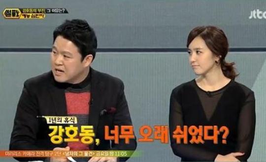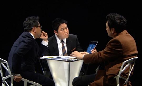 그런데 같은 맥락에서 애매한 지점이 하나 남는다. 지금 이 시점에서 <썰전>의 가장 큰 폐단은 강용석이 호감으로 보인다는 것이다. 한때 우리 지역구 국회의원이었던 관계로 갖는 감정임을 일부 부정할 수는 없지만 센놈만 붙잡는다면서 아직 <해피투게더>의 사우나에도 발을 못 붙인 최효종을 고소하고, 박지윤 아나운서가 여전히 불쾌함을 표하는 게 당연할 만큼 사고를 제대로 쳤는데 되려 큰소리치고 뻔뻔하게 다시 출마했던 문제적 인물이 강용석이다. 그런데 그런 그가 코를 찔찔 흘리며 애쓰는 모습을 보니 괜히 괜찮아 보이는 거다.
