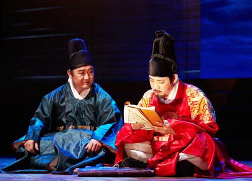 스펙터클하고 긴장감 넘치는 장면을 편하게 보고 싶다면 영화를 보면 된다. 그보다는 보다 자유스런 시선으로 인물의 심리, 그리고 자신의 내면을 보고 싶다면 연극을 보면 된다. 지난 23일 개막한 연극 <광해, 왕이 된 남자>(이하 광해)는 영화의 후광을 등에 업은 작품이 아니라 제작 초기부터 동시에 기획을 시작한 작품이다. 하지만 관객들은 영화와 비교하며 극과 극의 반응을 보였다.
