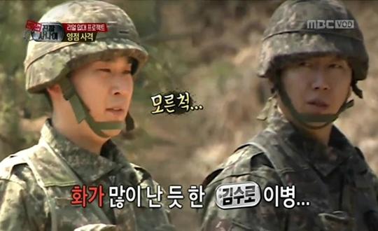 [엔터미디어=김교석의 어쩌다 네가] <일밤>의 ‘진짜 사나이’는 현존하는 예능 프로그램 중 가장 실험적인 프로그램이다. ‘연예인들이 군대에 입소한다.’ 이 한 가지 로그라인 이외는 아무런 구성이 없다. 장치가 없기로는 그 예전 아무것도 없이 가다가 아무것도 남기지 못하고 없어진 ‘대망’과 유사하다. 실제로 김수로를 비롯한 여섯 연예인들이 군대에 입소해 일주일간 생활하다 나오는 것이 <진짜 사나이>의 전부이고, 이 프로그램은 이들의 입소가 절대로 카메라 앞에서만 보이는 설정이 아니라 실제 사병과 똑같이 생활하고 대우받는 것을 보여주는데 모든 역량을 쏟는다.