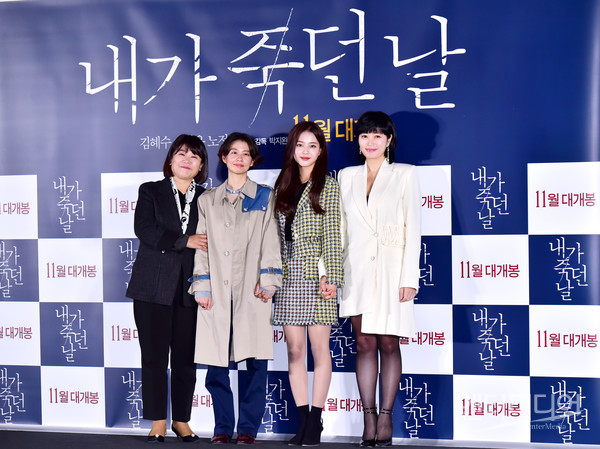 [엔터미디어 김나윤 기자] 배우 이정은(왼쪽부터), 박시완 감독, 노정의, 김혜수가 4일 오후 서울 용산구 CGV 용산아이파크몰에서 열린 영화 ‘내가 죽던 날’ 언론시사회에서 포토타임을 갖고 있다
