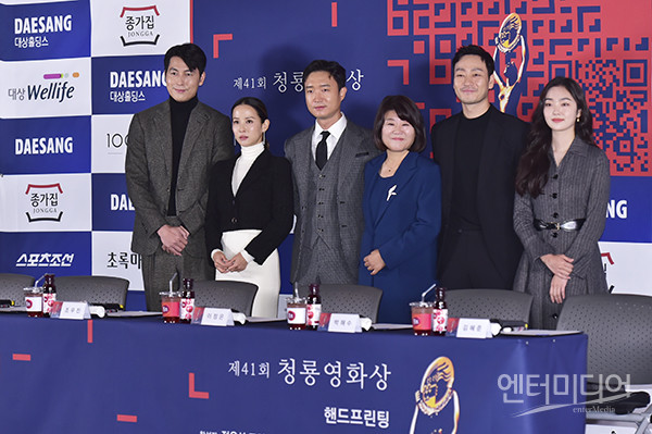 [엔터미디어 김나윤 기자]  제40회 청룡영화상 수상 배우들이 12일 오후 서울  영등포구 여의도CGV에서 열린 제41회 청룡영화상 핸드프린팅 행사에 참석해 기념촬영하고 있다. 왼쪽부터 정우성 남우주연상, 조여정 여우주연상, 조우진 남우조연상, 이정은 여우조연상, 박해수 신인남우상, 김혜준 신인여우상 전년도 수상자.