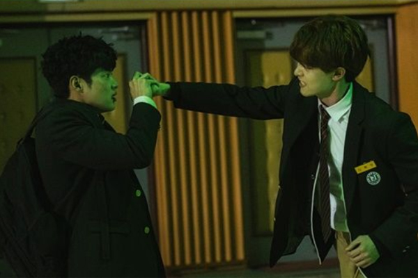 상습적인 괴롭힘을 당하는 친구 웅민(김은수)과 절친인 주연(이지원)의 친구로 역시 학교 일진들의 괴롭힘을 당하게 된 소문이 능력을 갖게 되고 그래서 이들에게 통쾌한 한 방을 날리는 장면은 이 악귀 잡는 슈퍼히어로 판타지가 현실감을 끌어오는 부분이기도 하다. 학교 폭력을 일삼는 일진인 혁우(정원창)는 중진시 시장 아들이고, 그를 따르는 무리들 중 한 명 역시 국회의원 아들이다. 이들은 그런 부모의 권력을 등에 업고 약자들을 괴롭히지만, 학교나 경찰도 이들을 제지하지 못한다.