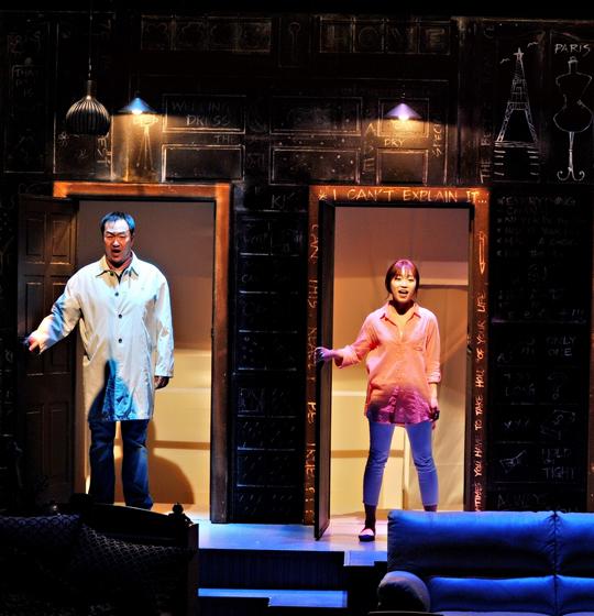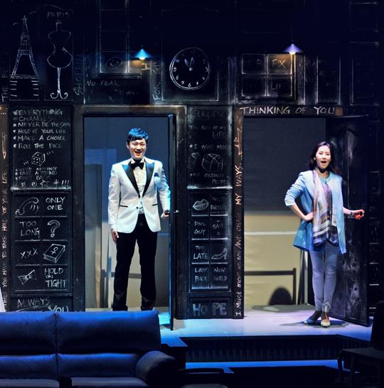 프레스콜에서 이 무대를 보고 의문점이 들었다. “왜 두 커플의 공간을 따로 구분하지 않고 한 무대에서 펼쳐놨을까?” 의문은 본 공연을 보고 나서 풀렸다. 이 작품은 ‘두 쌍의 커플의 사랑과 인생 이야기’란 탈을 쓰고 있었지만 결과적으로 한 쌍의 커플을 입체적으로 무대에 불러낸 뮤지컬이었다. 이니셜을 따르면 ‘CJ 커플’의 현재와 미래의 러브 송 뮤지컬 쯤 되겠다.