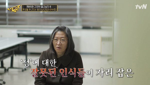 이수정 교수는 범죄심리학이 범죄자의 마음을 연구하는 학문이라며, 왜 그 마음을 연구하느냐는 질문에 “범죄자가 형이 만기 돼서 출소를 해도 사회로 돌아갔을 때 또 다시 재범을 할 거냐 안할 거냐는 전적으로 그 사람 마음에 달려 있기” 때문이라고 했다. 그 마음을 연구 안하면 이 사람이 지역사회에서 또 다른 범죄를 저지를 수 있기 때문이라는 것.