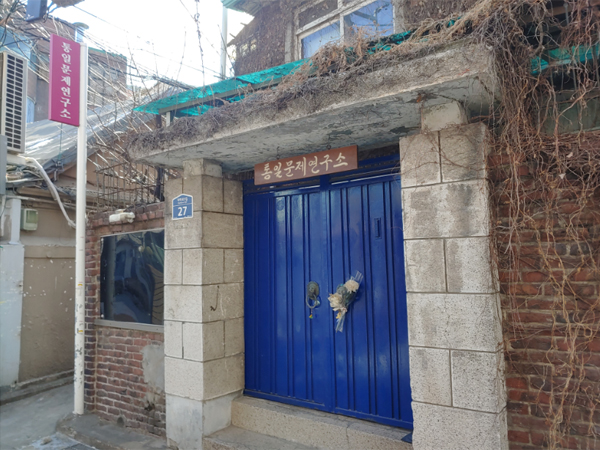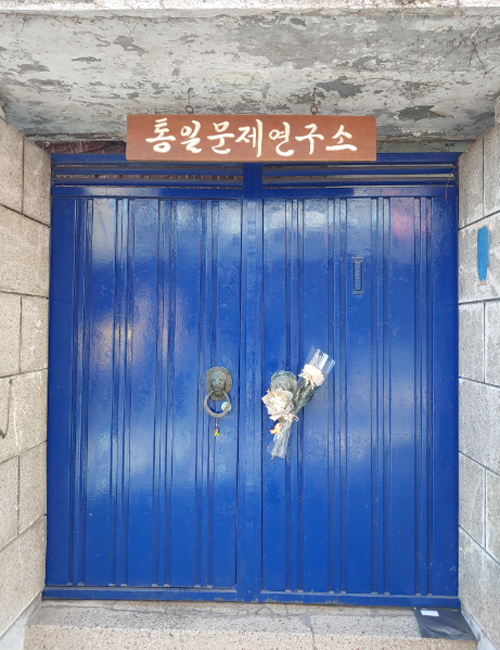 문재인 대통령을 비롯해 많은 국민들이 故 백기완 선생을 추모한 지난 17일 생전 그가 소장으로 있던 통일문제연구소 문 앞에는 국화 한 송이가 놓여 있었다.