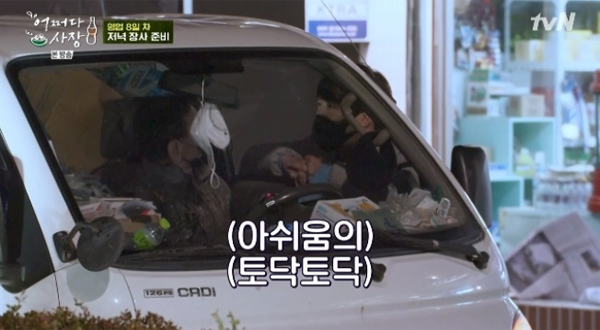 8일차 정도가 되니 슈퍼 일도 이제 매일의 루틴처럼 척척 돌아간다. 눈을 뜨고 가게에 빈 상품들을 채워 넣고, 동네 사람들에게 따뜻한 커피 한 잔의 여유를 제공하는 자판기에 물을 채우고 동전까지 챙겨 놓는다. 새로 찾아온 알바생들에게 일처리 방식을 알려주는 것도 이젠 능숙하다. 그래서 알바생들에게 슈퍼를 맡겨두고 차태현과 조인성은 행동반경은 조금씩 넓어진다. 나무 공예를 하시는 분의 공방에 들러 차를 마시고, 근처 터널 공사 현장의 식당을 찾아 슈퍼에서 친해진 어머님이 차려주신 밥을 맛있게 챙겨먹는다.
