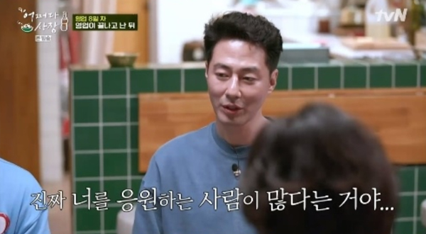 tvN 예능 <어쩌다 사장>에서 제일 먼저 주목을 끈 건 조인성이었다. 예능 출연이 그리 많지 않은데다 먼저 시선이 갈 수밖에 없는 비주얼이어서다. 아마도 이건 이곳 슈퍼가 있는 원천리 사람들에게도 마찬가지였을 게다. 그가 던지는 미소 하나, 말 한 마디에도 슈퍼 분위기가 훈훈해졌던 게 사실이었으니 말이다.