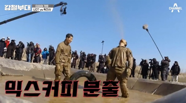 UDT와 특전사가 보여준 진흙탕 속 타이어격투 또한 <강철부대>의 정점이었다. UDT의 김상욱은 직접 타이어격투에 자원한다. 스스로 그 동안 팀에 큰 도움이 된 적이 없었다며, 다른 팀원들 물 한 방울 묻히지 않게 만들겠다는 식의 선언까지 한다. 아니, 드라마에서 프러포즈할 때나 나올 말이 <강철부대>에서 이렇게 변주되다니. 김상욱은 괴력을 보여주며 특유의 지략으로 진흙탕 싸움에서 SSU를 단숨에 제압했던 특전사를 위기에 몰아넣는다. 박준우를 제외한 모든 팀원들이 김상욱의 괴력 앞에 무너졌던 것이다.