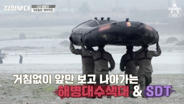 그런데 4강전을 앞두고 <강철부대>는 다소 느슨해진 편집구성을 보여주고 있다. 물론 이건 지금까지의 흐름이 워낙 강력했기 때문에 그렇게 느껴지는 것일 수 있지만, 어쨌든 고정적으로 프로그램을 본방사수하는 시청자들은 그 흐름 안에서 이런 느낌을 받고 있는 것. 이런 느낌은 지난 주 데스매치를 치르고 난 후, 갑자기 탈락했던 해병대 수색대와 SDT가 다시 등장하고 여기에 그 날 데스매치에서 진 SSU까지 함께 하는 ‘4강 쟁탈전’을 고지하면서 생겼다.