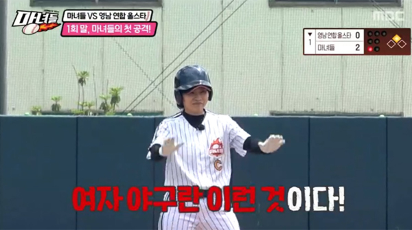 그렇다보니 <골때녀>의 수많은 출연자들은 여성이 아니라 그냥 ‘선수’로 주목받는다. 이들의 얼굴이나 인간미가 아니라 퍼포먼스에 집중하게 된다. 반면 <마녀들>은 KBO 중계를 즐겨보고, 사회인 야구를 즐기는 헤비한 야구팬의 시선에 맞춰진 기획이란 인상이 강하다. 준비과정이 비교적 허술하고, 방송의 주연과 경기의 주역이 다르다보니 맵시 있는 유니폼 차림의 연예인 선수들이 ‘열심히’ 야구를 하는 모습을 기특하게 바라보는 시선과 사회인 여자 야구에 대한 관심이 하나의 결을 이루지 않고 튄다. 그래서 도전에 공감하거나 기획의도가 와 닿지 않는다.