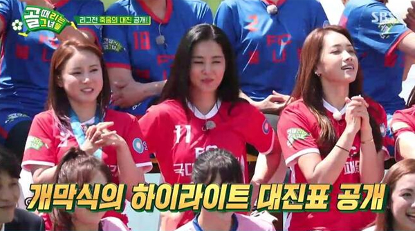 반면 <골때녀>는 4팀으로 토너먼트 리그를 구성했던 지난 파일럿보다 2팀 더 늘려 6팀으로 대진표를 확장했다. 기존의 세 가지 재미요소를 강조하는 데 이야기를 펼치는 설정이 판이하다. 성장서사를 따르다 성장이 둔화된 이후 볼거리와 핍진성의 한계에 봉착했던 기존 스포츠 예능과는 조금 다르게 접근한다. 하나의 팀으로 뭉쳐가며 성장하는 스포츠 만화의 스토리라인보다는 당장의 승부에 초점을 맞춘다. 해설과 중계진에 포커스를 둬서 스포츠의 다이나믹함을 더욱 강조하면서 토너먼트 특유의 단판 승부의 쫄깃함으로 승부의 긴장감을 설명하거나 재차 의미 부여하는 과정은 생략한다. 캐릭터는 피치 위의 플레이로 만들어간다. 예능의 캐릭터쇼라기보다 스포츠 선수들의 별명 짓기에 가깝다. 보는 관점에 따라 <골때녀>는 <불청> 박장군(박선영)을 위한 스핀오프이기도 한 만큼 지켜볼 포인트도 몇몇 부분 성립돼 있다.