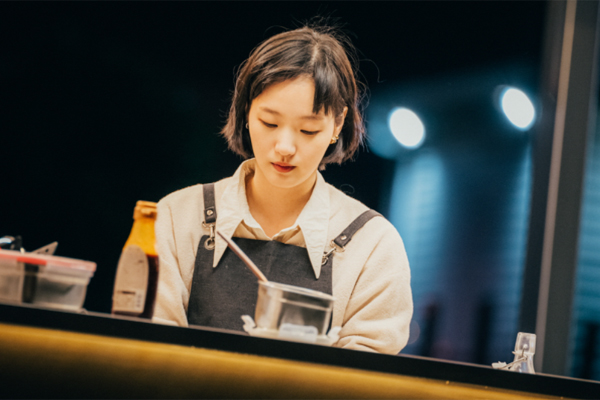 그런데 막상 뚜껑을 열어보니 기대했던, <리틀 포레스트>나 <안경>과 같이 이른바 잔잔하고 소소한 일상과 풍경이 어우러진 영화가 아니라 분절된 편집으로 여러 이야기를 오려 붙인 초기 왕가위 감독의 옴니버스 구성의 영화에 가깝다. 우선 캐스팅부터 윤종신, 온유, 이수현, 정동환(멜로망스), 싱어송라이터 자이로 등 <비긴어게인>식의 구성과 이지아, 이동욱, 김고은 등 배우를 앞세운 팝업스토어 예능의 캐스팅이 한 그릇 위에 올려졌다. 볼거리도 출연진이 선곡한 음악으로 공연하는 <비긴어게인>과 연예인들이 직접 요리를 하고 서빙하는 <윤식당>, <서핑하우스> 등으로 대표되는 팝업 예능의 풍경이 동시에 나타난다. 여기에 바다 생태계에 대한 경각심과 스킨스쿠버가 추가된다.