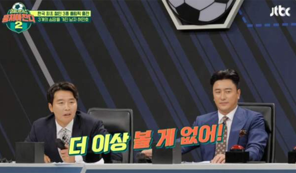 [엔터미디어=정덕현의 네모난 세상] JTBC 예능 <뭉쳐야 찬다2>는 ‘전설들의 조기축구’라는 시즌1의 콘셉트에서 한 차원 더 나아가 비인기 스포츠 종목과 스타들을 조명한다는 취지의 ‘신입 선발과정’을 넣었다. JTBC <싱어게인>의 오디션 형식을 가져왔고, 심사위원으로 안정환, 이동국, 김용만, 정형돈이 자리했다. 취지도 좋았고, 이를 실행하기 위해 끌어온 오디션 형식도 나쁘지 않았다.