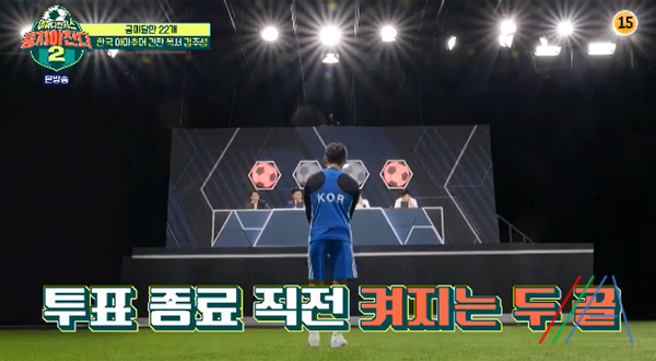<뭉쳐야 찬다2>가 우승을 목표로 하는 스포츠를 소재로 하고 있으면서도 예능 프로그램이라는 점을 분명히 드러내는 이 장면은, 어째서 심사에 축구 레전드인 안정환, 이동국 이외에도 김용만, 정형돈이 앉아 있는가를 잘 드러내는 대목이 아닐 수 없다. 진심을 다해 축구를 하겠다는 건 이해되지만, 그렇다고 국가대표를 뽑는 것도 아닌데 너무 엄밀한 기준을 과하게 내세우다보면 비인기종목이지만 그 종목에서 이미 레전드인 선수들에 대한 예우가 아닌 것 같은 불편함이 남는다.