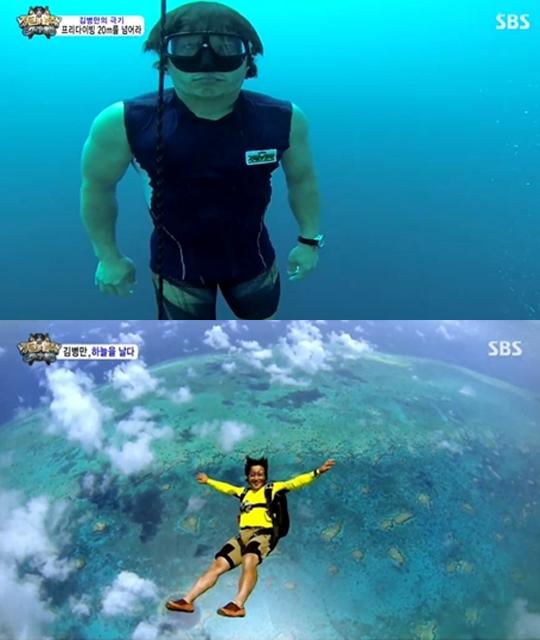 그런 그였지만 지금 그는 김병만이라는 이름 하나로 같이 정글로 떠나는 동료들을 안심시키는 그런 존재가 되었다. 스카이다이빙과 스쿠버다이빙 같은 자격증을 따서 블루홀로 뛰어내리고 그 심해로 과감히 뛰어드는 김병만의 준비성은 어찌 보면 가장 위험할 수 있는 <정글의 법칙>이라는 프로그램을 그나마 믿게 만드는 보루가 되고 있다.