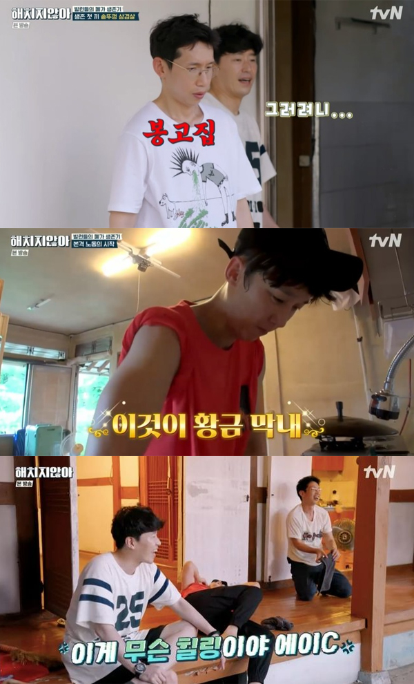 뜨거운 한 여름, 공복을 달래며 마을에 나가 장판부터 문풍지에 먹을거리들을 사서 돌아와 서투른 솜씨로 장판을 깔고 문풍지를 교체하고 장작을 피워 삼겹살을 구워 먹는 모습은 그래서 별다른 예능적 조미료를 치지 않아도 웃기다. 그 와중에도 이들은 저마다의 성격과 개성을 드러낸다. 맏형으로서 체력은 좀 떨어져도 애써 일을 하며 가끔씩 주단태의 분노를 유머로 드러내는 엄기준이라면, 다소 엉뚱하고 허술한 말과 행동으로 웃음을 만들고 의외의 고집을 피워 티키타카를 만드는 봉태규다. 그리고 철없어 보이는 두 형과 달리 막내 윤종훈은 집안일부터 음식까지 챙기는 ‘황금막내’로 등극했다.