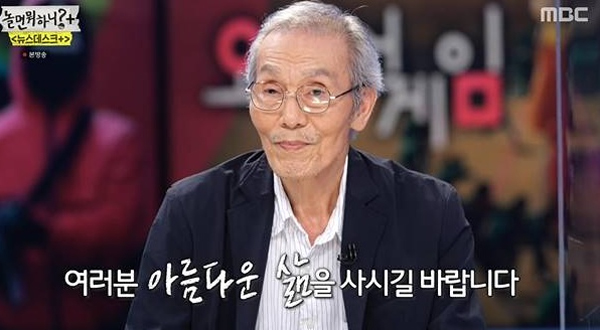 [엔터미디어=정덕현의 네모난 세상] “글쎄 생각 안 해봤는데.. 내 주위에 같이 있는 사람들 좀 편안하게 해주고, 그리고 사회에 기여를 할 것 같은데요...” MBC 예능 <놀면 뭐하니?+>에 나온 <오징어 게임>의 001번 오일남 역할로 전 세계의 관심을 받고 있는 오영수 배우는, 만일 드라마에서처럼 456억이 생긴다면 무얼 할 것 같냐고 묻는 유재석의 질문에 그렇게 답했다. ‘뉴스데스크+’라는 콘셉트로 마련된 뉴스 도전에서 마련한 초대석 인터뷰에서였다.