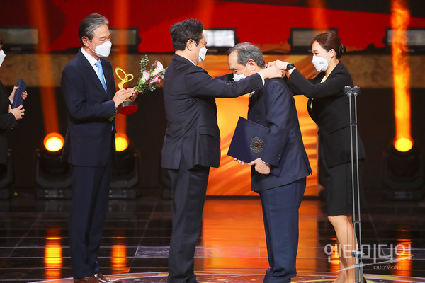 [엔터미디어 김나윤 기자] 배우 박인환이 28일 오후 서울 중구 국립극장에서 열린 ‘제 12회 대한민국 대중문화예술상(2021)’ 시상식에 참석해 '보관문화훈장'을 받고 있다.