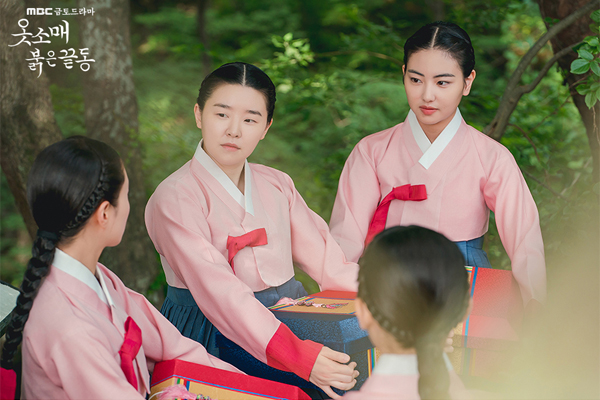 <옷소매 붉은 끝동>은 성덕임을 그냥 ‘궁녀’가 아닌 글씨를 잘 쓰고 이야기로 사람들의 마음을 사로잡는 ‘전기수’로서의 면모를 가진 직업인으로 그렸다. 이것은 그의 동무들인 김복연(이민지), 배경희(하율리), 손영희(이은샘) 같은 궁녀들도 마찬가지다. 김복연은 대전의 세수간나인이고, 배경희는 침방나인으로 손재주가 뛰어난 궁녀이며 손영희는 세답방나인으로 다듬이질 재주를 가진 궁녀다. 궁녀로서 할 수 있는 일이 별로 없을 것 같지만 드라마는 이들을 그렇게 밋밋하게 그리지 않는다. 이들은 나름의 ‘소확행’을 추구하는 삶을 보여주기도 한다.